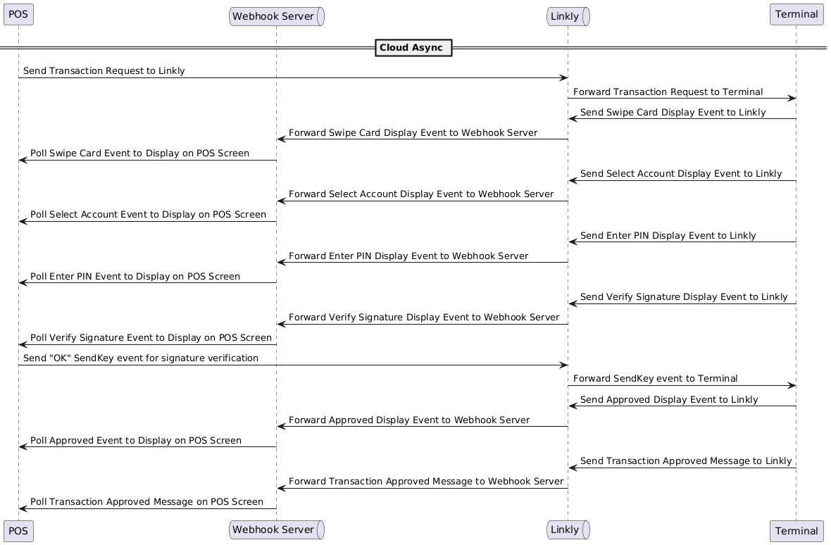 Async is the preferred integration type as it sends terminal events to the POS in real time providing the merchant more visibility and control over the transaction.